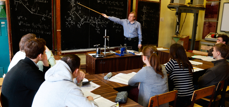 Студенты МГТУ имени Н.Э. Баумана во время занятий в кабинете механизмов.