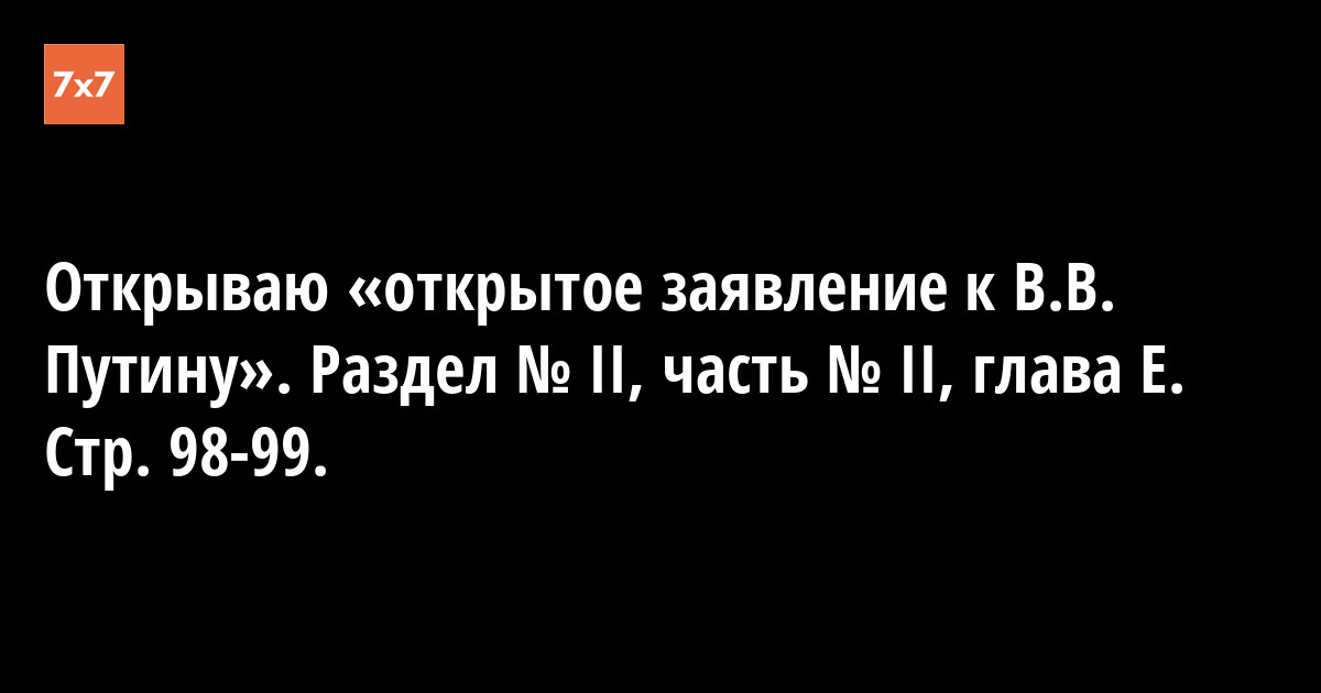 Открываю «открытое заявление к В.В. Путину». Раздел № II, часть № II, глава Е. Стр. 98-99.