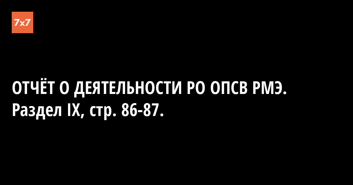 ОТЧЁТ О ДЕЯТЕЛЬНОСТИ РО ОПСВ РМЭ. Раздел IX, стр. 86-87.