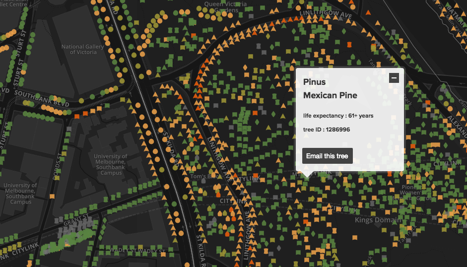 В 2013 году власти Мельбурна выдали каждому дереву в городе по уникальному идентификатору и собственному адресу электронной почты. Предполагалось, что горожане таким образом смогут оперативно сообщать о проблемах, возникших с тем или иным деревом.
