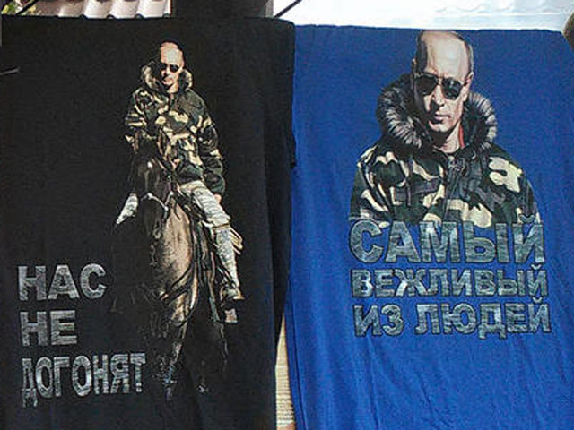 В июне текущего года в ГУМе начали продавать футболки с Путиным, созданные молодежным брендом Anyavanya. Были разработаны 15 принтов, среди них - "Путин - моряк", "Путин - пилот", "Путин - танкист". Стоимость одной вещи составила 1200 рублей. Футболки примерили голливудские актеры Микки Рурк и Стивен Сигал. В октябре коллекция одежды с изображением Путина была представлена на Неделе моды в Париже.