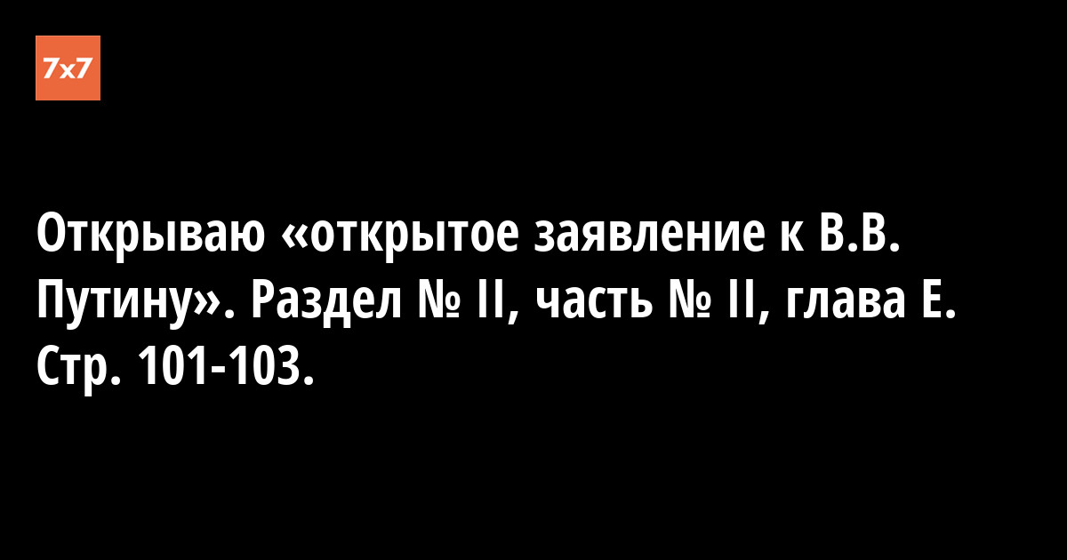 Открываю «открытое заявление к В.В. Путину». Раздел № II, часть № II, глава Е. Стр. 101-103.