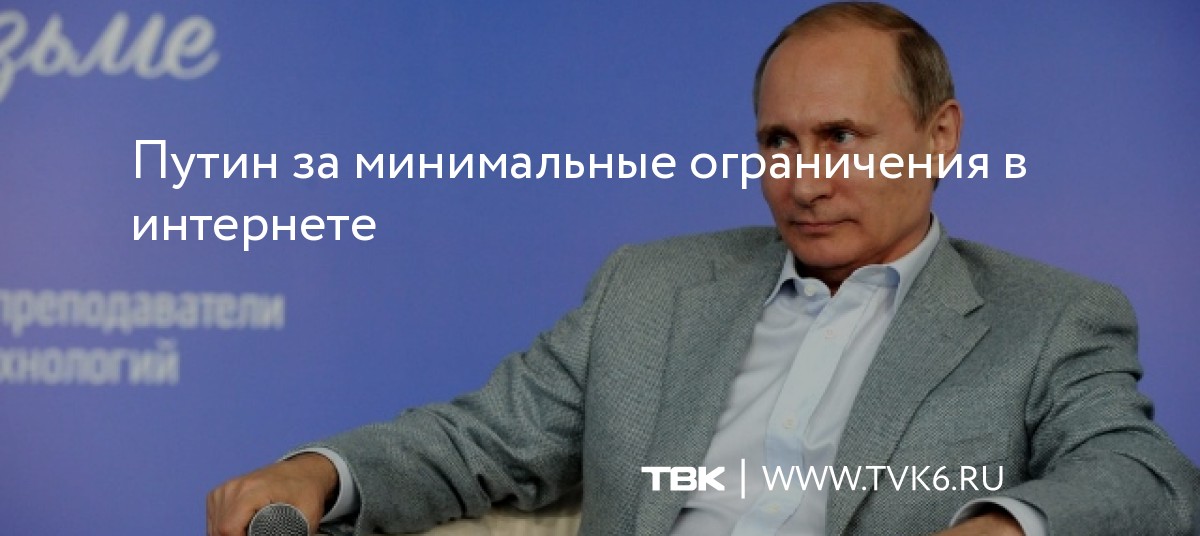 Президент Путин считает, что ограничения в интернете должны быть минимальными. Эту мысль он озвучил на встрече с участниками смены «Молодые учёные и преподаватели в области IT-технологий», сообщают «Ведомости».