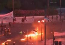 В среду в Афинах произошли массовые столкновения между демонстрантами и полицией. Полиция применила слезоточивый газ против примерно 10-12 тысяч протестующих против условий соглашения с кредиторами. Участники акции, в свою очередь, закидали стражей порядка бутылками с зажигательной смесью.