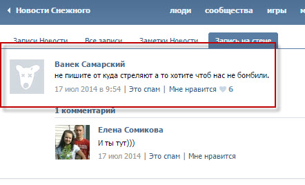 Есть также два сообщения юзера "Ванек Самарский", бойца сепаратистских формирований, жителя Снежного. Его настоящее имя – Иван Кривобедрый. Сообщения, вероятно, имеют отношение к катастрофе "Боинга", они написаны сразу после его падения. Однако контекст в данном случае неясен: