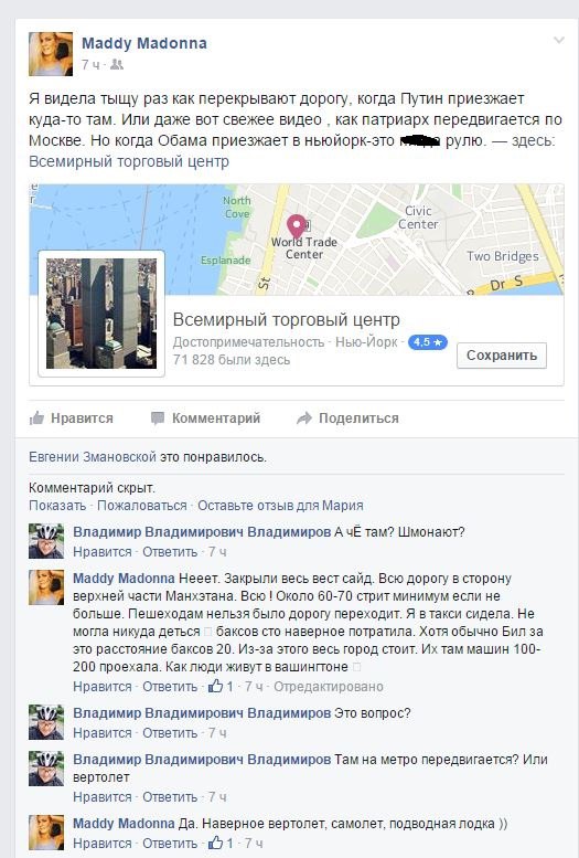 Но когда Обама приезжает в Нью-Йорк — это ... рулю».