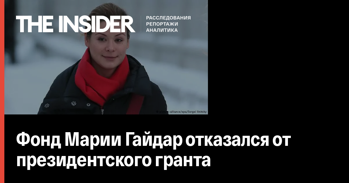 Позже стало известно, что Мария Гайдар официально сложила с себя полномочия руководителя фонда «Социальный запрос», кроме того, организация сама отказалась от получения президентского гранта. Эту информацию рассказала «Интерфаксу» пресс-секретарь фонда Наталья Малышева.