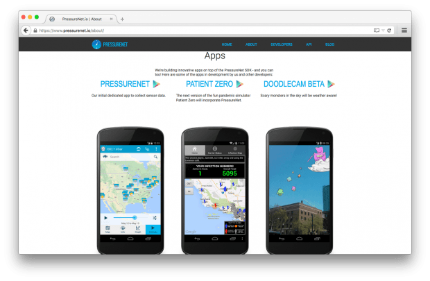 PressureNet построили платформу с открытым исходным кодом, которая может собирать данные через сенсоры смартфонов на базе Android. Для этого они используют приложение PressureNet SDK. А с помощью API PressureNet ученые и разработчики смогут использовать полученные данные в своих проектах.
