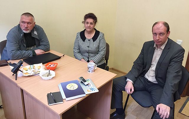 Фото: Даниил Туровский / «Медуза» Слева направо: Анатолий Артюх, Любовь Качесова и Андрей Цыганов. Офис «Народного собора», Санкт-Петербург, 24 июля 2015 года