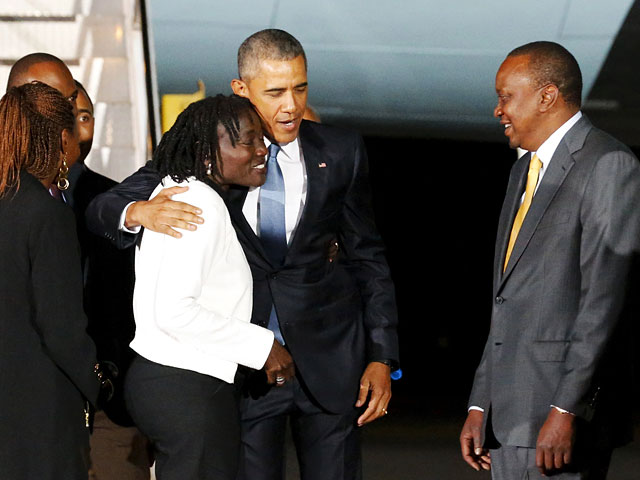 По прилету в аэропорту Найроби американский борт N1 встречал лично президент Кении Кениата. Там же Обаму ждала его родственница, проживающая в африканской стране, Аума, которая села в лимузин к главе государству и проследовала с ним в отель. По информации источника, в Кении в связи с приездом американского лидера введены повышенные меры безопасности. В Найроби большинство центральных улиц перекрыты, а правоохранители посоветовали местным жителям не выходить из дома.
