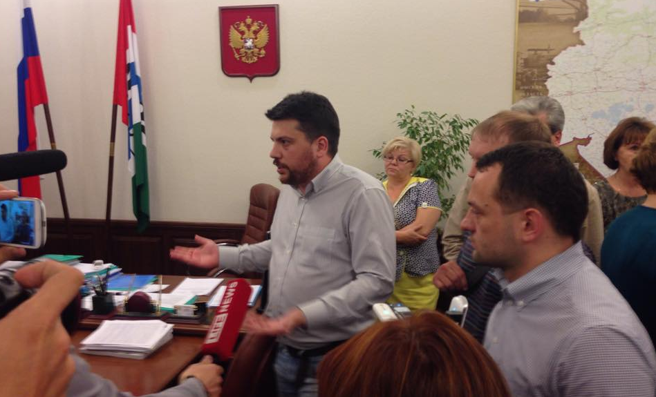 Леонид Волков отказался покидать кабинет председателя избиркома Петухова. Фото: Наталия Зотова / «Новая газета»