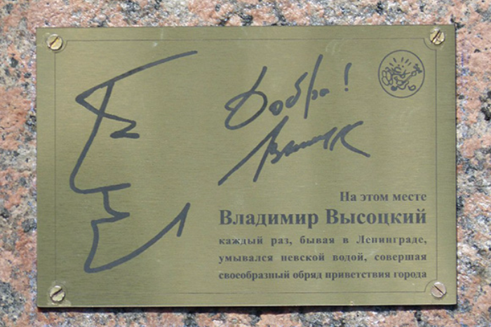 Государственный музей городской скульптуры попросил администрацию Василеостровского района Петербурга и КГИОП демонтировать памятную табличку в честь Владимира Высоцкого, пишет «Фонтанка». В сообщении говорится, что табличка на спуске у Академии художеств была установлена без согласования. Как пишет издание, научный сотрудник отдела памятников и мемориальных досок музея Елена Жарова заявила, что установка таблички на гранитный парапет набережной — «варварская, самодеятельная работа». «Гранит [в месте установки таблички] очень хрупкий. В дальнейшем камень может дать целую сетку трещин», — говорит Жарова. Сам музей демонтировать табличку не может, так как не имеет таких полномочий. Музей следит только за состоянием сфинксов и оснований скульптур, уточняет издание. Специалисты КГИОП о табличке знают, но что с ней делать, пока не решили. Надпись на самой табличке гласит: «На этом месте Владимир Высоцкий каждый раз, бывая в Ленинграде, умывался невской водой, совершая своеобразный обряд приветствия города». Ее установили 25 июля в честь 35-й годовщины со дня смерти музыканта. Сегодня стало известно, что в Москве появилась улица в честь Высоцкого.