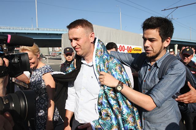 Фото: Кирилл Кухмарь / Коммерсантъ Алексей Навальный и художник Артем Лоскутов после встречи с жителями Новосибирска