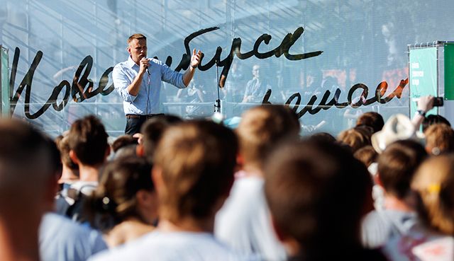 Фото: Александр Лукин / AP / Scanpix Алексей Навальный выступает на митинге в Новосибирске. 7 июня 2015 года