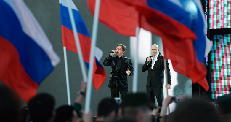 Певцы Григорий Лепс и Александр Розенбаум на концерте «От Руси до России», приуроченном к Дню России.
