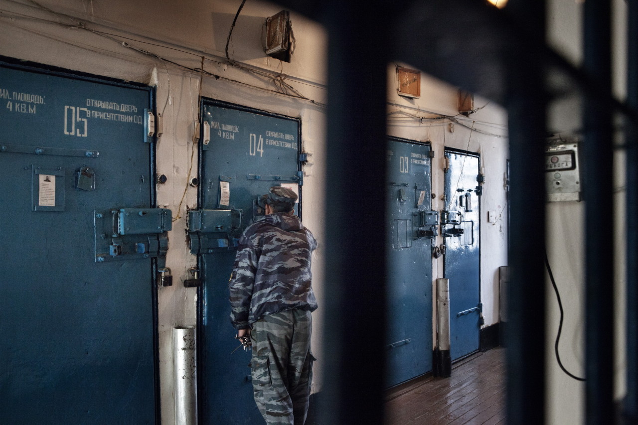 Охранник смотрит в глазок на двери камеры, внутри — потенциальный суицидникФото: Дмитрий Беляков/The Sunday Times Magazine