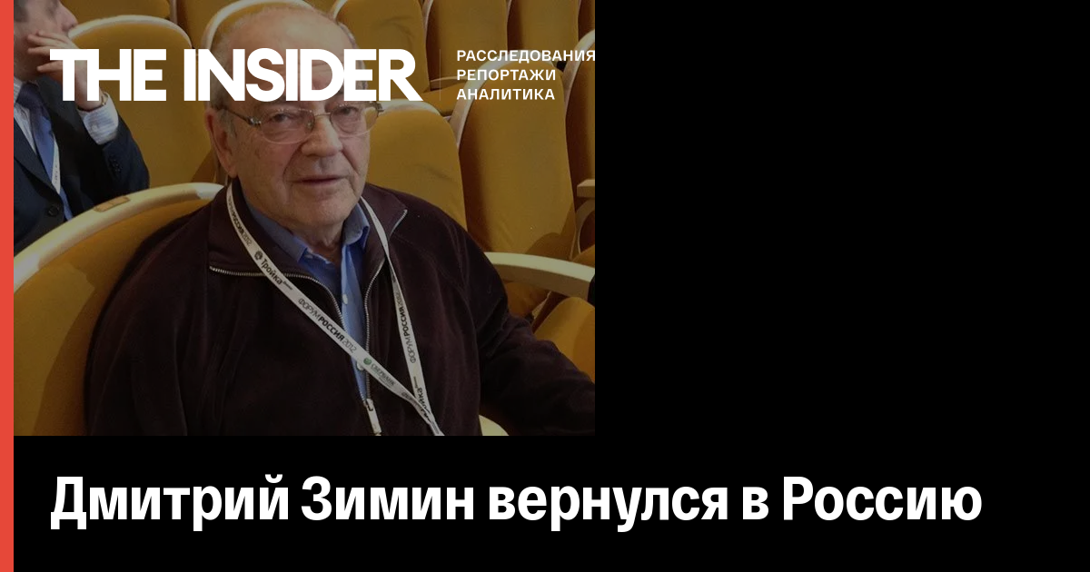Основатель прекратившего существование фонда «Династия» Дмитрий Зимин вернулся в Россию. Об этом сообщил «Интерфакс» со ссылкой на источник в окружении бизнесмена.