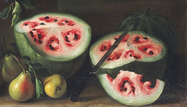 Арбузы на этой картине — в нижнем правом углу. И они совсем не такие, какими мы их привыкли видеть. «Весело ходить в музеи изобразительного искусства, смотреть на натюрморты и видеть, как выглядели наши овощи 500 лет назад», — рассказал Vox Ниинхюйс.