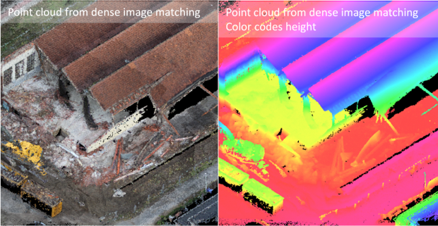 На основе полученных фотографий с помощью программного обеспечения Pix4D создается трехмерная модель зданий, которая лучше передает информацию о геометрических изменениях, что позволяет лучше оценить ущерб после землетрясения.