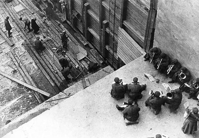 In the December 1933 issue of the illustrated magazine USSR in Construction, which came out in three languages and was distributed, in particular, among the Soviet elite, Rodchenko wrote about this brass band from the picture and photograph: "For 20 months, [the camp] has trained around 20,000 skilled workers in 40 specialties. These are all former thieves, kulaks, vermin, and murderers. For the first time they come to learn about the poetry of labor, and the romance of construction. They worked to the music of their own orchestras." The same magazine features photos using “concealed wiring,” the aim of which was to show work as pleasurable during the construction of the White Sea Canal. Perhaps it can be called creativity, art even, if you don’t know or don’t want to know what a lie this all is—the propaganda and the crime against humanity, elevated to the rank of art. If you don’t see or don’t want to see the burial pit, where between 100 and 200 people were shot in the head.