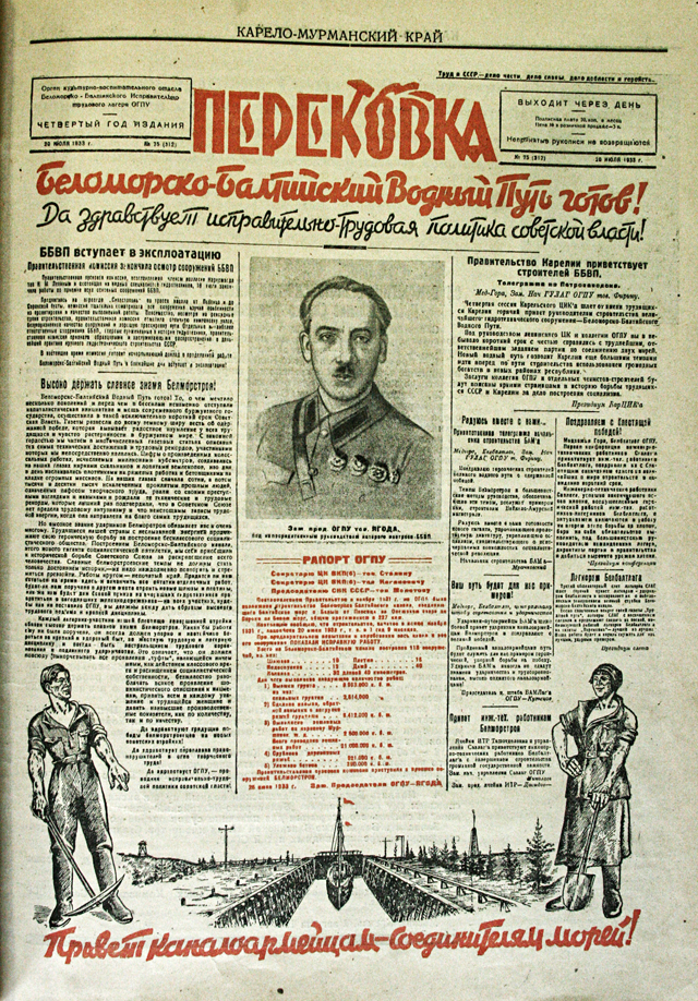 On top of that, for the project’s “ideological support,” the OGPU needed "engineers of the human soul"—artists, photographers, writers, and poets. At the White Sea Canal, a special “cultural-educational” department emerged, which comprised a theatre made up of a number of prisoners, and which issued a camp newspaper called Reforging. Finally, six months before the end of the canal’s construction, the camp even started developing its own darkroom.
