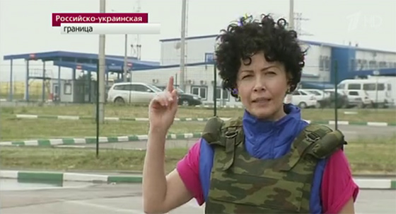 © Первый канал 9 июля в сюжете из приграничной зоны Юлия Чумакова берет несколько комментариев у своих иностранных коллег, которые приехали поговорить с украинскими беженцами. Чумакова отмечает при этом, что многие журналисты тщательно подбирали слова, кто-то говорить отказывался, а «CNN перед ответом на вопрос просили аккредитацию». «О чем они расскажут своим зрителям?» — задается вопросом Чумакова. Беженцы говорят иностранцам, что ненавидят семью Порошенко, и предлагают Псаки провериться у психиатра.