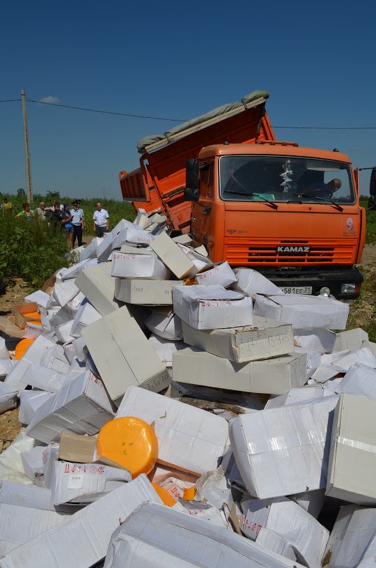 В России всего лишь за один день, 6 августа, когда вступил в силу указ Владимира Путина об уничтожении продуктов, ввезенных в обход эмбарго, было уничтожено 319 тонн продовольствия – фруктов, овощей, сыров, мяса. Процесс уничтожения еды продолжается.