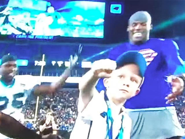 Юный болельщик "Каролины Пантерс" Брэйлон Бим присоединился к команде на открытой тренировке.