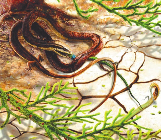 В один прекрасный день 2012 года британский палеобиолог, преподаватель Портсмутского университета Дэвид Мартил (David M. Martill) привел своих студентов в Музей бургомистра Мюллера в Зольнхофене (Германия), чтобы показать им остатки археоптерикса. В музее проходила выставка находок из Бразилии, и Мартил, специалист по окаменелостям мелового периода из бразильской формации Крато, увидел ламинированный известняк в рамке, а в нем под этикеткой «Неизвестная окаменелость» — длинное тельце длиной около 10 см с четырьмя крошечными лапками (рис. 1). Четвероногая змея! Эту поразительную находку Дэвид Мартил исследовал вместе с филогенетиком из Университета Бата Николасом Лонгричем (Nicholas R. Longrich) [1].