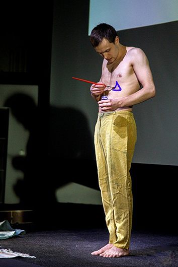 © Александр Фонарев «Потеря равновесия» Брешью программы стал невыпуск спектакля Яны Туминой «Яго». Оказалось, что выпустить его на том невском дебаркадере, который был облюбован постановщицей и художником Эмилем Капелюшем, по ряду технических и юридических причин невозможно. Когда это стало окончательно ясно, искать иные варианты было поздно. Самый эстетский спектакль программы, задумывавшийся как сюита сложных звуковых и визуальных аттракционов, смелый синтез западной и восточных культур (горловое пение!), оказался отложен на будущее — возможно, это проделки Яго. Безумно жаль.