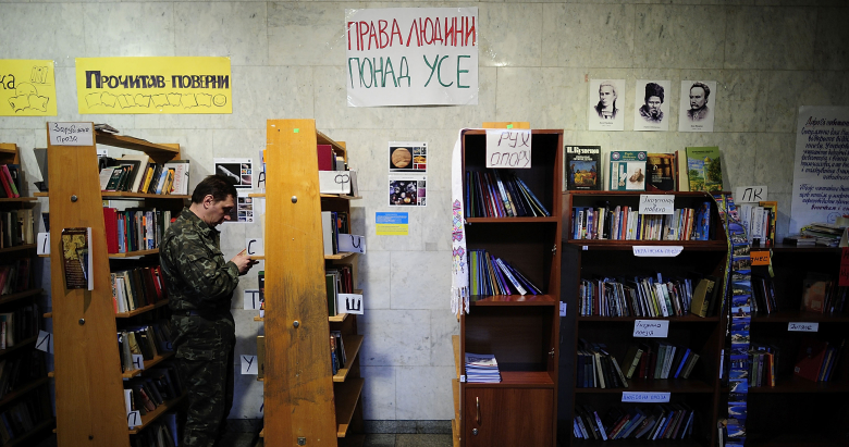 Импровизированная библиотека в Украинском доме на Европейской площади.