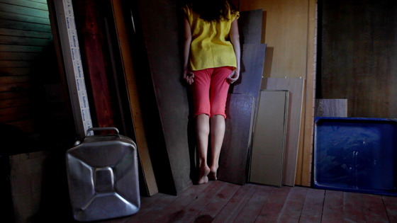 «В кубе», видеоинсталляция, 2015 Или обратиться к друзьям и преподавателям, как делают многие в Школе Родченко. «Это тоже помогает, — соглашается художница. — Не то чтобы много, но я советуюсь — с Братковым (но сейчас меньше) и с друзьями. Потому что закапываешь в своих работах, в самой себе и уже вообще просто ничего не видишь. Может, даже не важно, кому ты это показываешь, а важно просто показать и самой проговорить». В школе принято коммунальное производство работ. У каждой работы, понятное дело, есть свой автор, но в процесс производства, обсуждения и идеепорождения включено еще много народу — студенты и выпускники делают друг другу звук, монтаж, снимаются в работах друзей плюс общая атмосфера. «Да, я, например, с Надей Гришиной сделала совместную работу, — говорит художница. — Вообще у меня на выставке есть работа, где я сняла и Сашу Пирогову, и Надю, и Иру Цыханскую. Но я их не использую как актеров, не даю им определенного сценария — главное, чтобы они себя свободно вели, а я бы просто это документировала». Когда Кузьмина с друзьями снимала мастерскую на «Электрозаводе», такой же обмен советами и идеями был с художниками, обосновавшимися здесь и создавшими собственную выставочную площадку: «Интересно, когда есть группа, сообщество, внутри которого активно обсуждается какая-то тема и делаются работы. Жаль, что сейчас в моей жизни этого стало меньше».