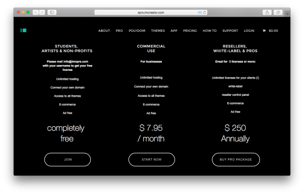 Премиум функции дают возможность перенести сайт на свой домен, при этом пользователю предоставляется доступ к неограниченному хостингу и всем встроенным темам оформления, а также отсутствует реклама.