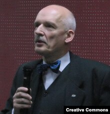 Януш Корвин-Микке, который придерживается крайне либеральных взглядов, что касается экономики, а также скептически относится к ЕС, неоднократно заявлял о том, что аннексия Крыма была "естественным процессом". Ни одна из польских парламентских партий, однако, не разделяет его отношения к украино-российским отношениям.