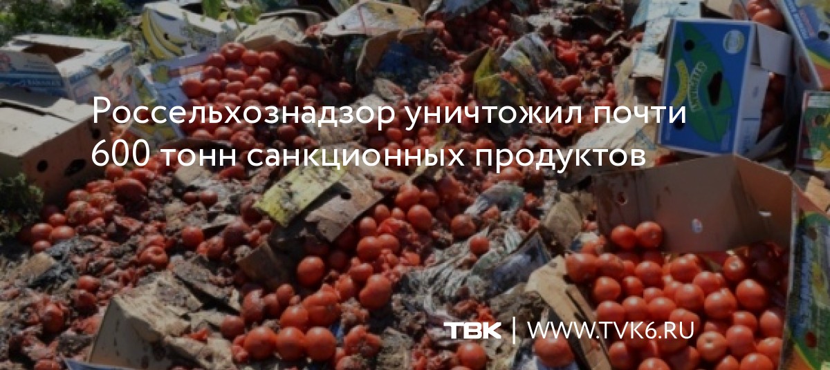 Россельхознадзор опубликовал на своем сайте 15 августа сообщение, в котором говорится об уничтожении почти 600 тонн продукции, попадающей под действие эмбарго.