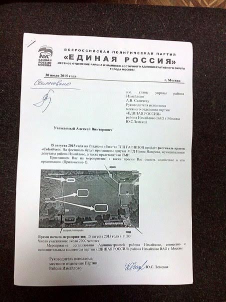 Письмо о согласовании фестиваоля, подписанное и. о. главы управы района Измайлово