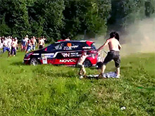 Как передает сайт ФАП, управлявший Renault Clio R3T Лукаш Бышкиневич не справился с управлением, автомобиль ушел в занос и вылетел на обочину. Несколько десятков болельщиков, завидев несущуюся машину, бросились наутек, а один из мужчин, поняв, что с ребенком ему не успеть, решил действовать "на противоходе". Схватив за руку сына, он буквально вытащил его из-под колес надвигающейся машины.
