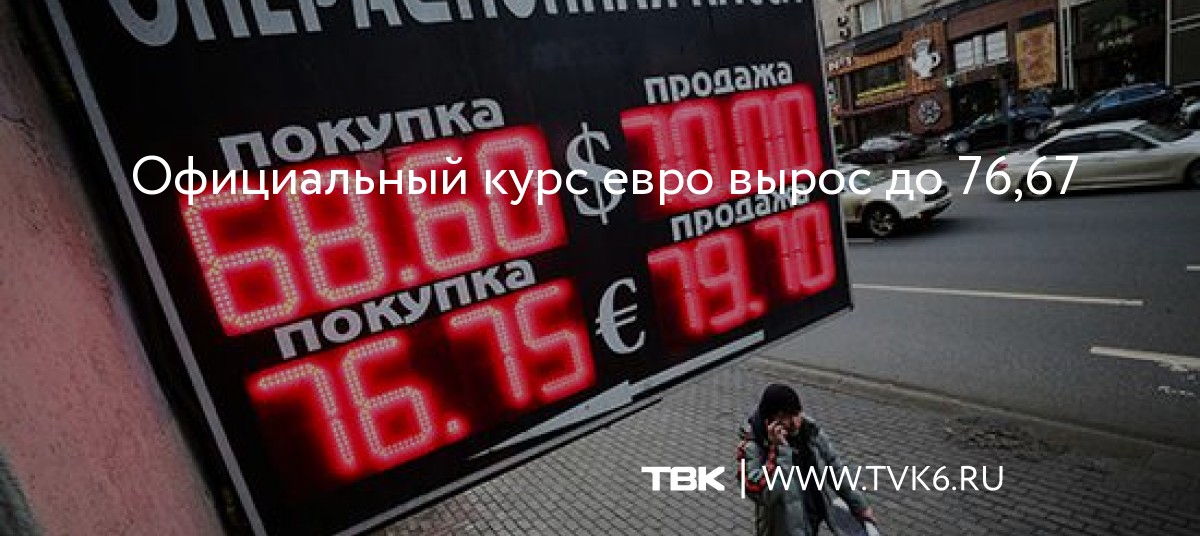 Официальный курс евро вырос до 76,67