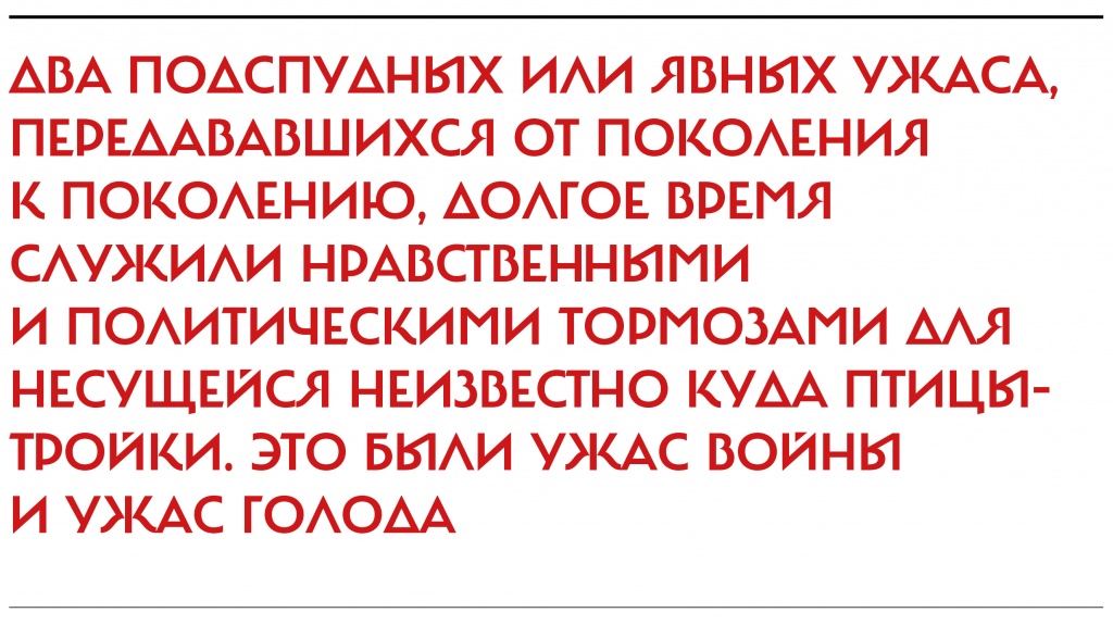 Выросло поколение, освобожденное от двух табу, служивших для нескольких поколений моральными императивами, худо-бедно скреплявшими и кое-как объединявшими вечно расползавшееся по швам общество. Два подспудных или явных ужаса, передававшихся от поколения к поколению, долгое время служили нравственными и политическими тормозами для несущейся неизвестно куда птицы-тройки.