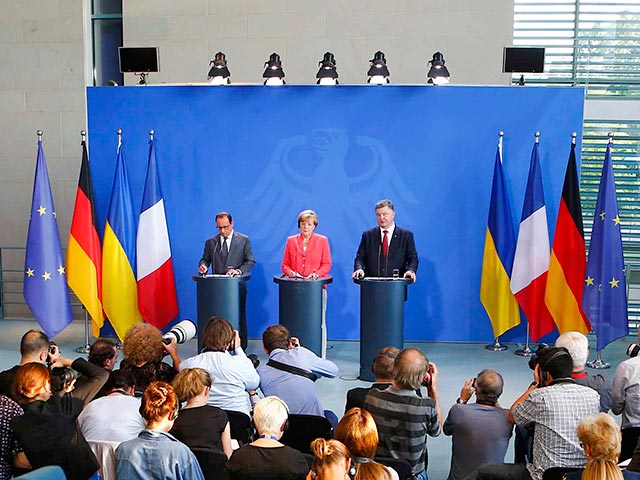 В Берлине вечером 24 августа начались трехсторонние переговоры с участием главы Украины Петра Порошенко, президента Франции Франсуа Олланда и канцлера ФРГ Ангелы Меркель. Перед встречей с коллегами украинский лидер выступил с речью об агрессии России, а неделей ранее сотрудники Организации безопасности и сотрудничества в Европе (ОБСЕ) сообщили об ухудшении ситуации на Донбассе.