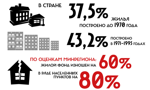 Факт: состояние жилого фонда в стране оставляет желать лучшего. Массовое жилищное строительство во времена Хрущева и Брежнева не отличалось качеством, и многоквартирные дома постепенно приходят в негодность. В стране 37,5 % жилья построено до 1970 года, 43,2% — в 1971–1995 годах, подсчитал Российский союз инженеров (РСИ). За 1990–2010 годы прирост жилого фонда составил 31,%, а аварийного стало больше в 4,1 раза. Панельные дома, составляющие более половины жилого фонда, надо ремонтировать раз в 25 лет, считают в РСИ.