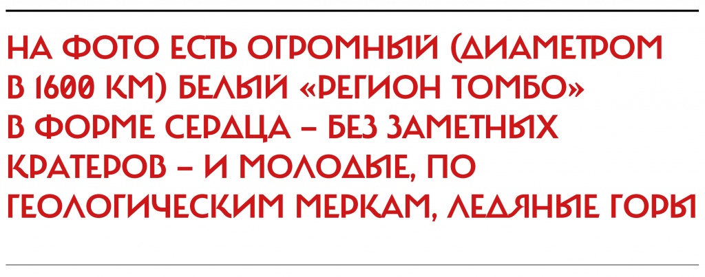 Белый «регион Томбо» на Плутоне на снимке напоминает сердце, его диаметр 1600 км Что увидели За эти несколько часов о Плутоне узнали больше, чем за 85 лет с момента его открытия. На первых же снимках ученые из команды New Horizons в Мэриленде (США) увидели скалы из чистого льда высотой в 3500 метров и возрастом, вероятно, в миллионы лет: при средней температуре поверхности в -229 0C водяной лед не уступает в твердости и постоянстве формы граниту. Разглядели дымку, которая поднимается на 80 км над поверхностью планеты. Опознали ледники из замерзшего азота, способные медленно ползти или, как говорят геологи, течь. Стоят ли эти красочные подробности $700 млн долларов, потраченных на проект? Плутон интересен ученым не сам по себе, а как первое самостоятельное тело из так называемого «пояса Койпера», которое удалось изучить. «Пояс» — это гигантское облако неизрасходованного в далеком прошлом стройматериала для планет на окраине Солнечной системы. Заглянуть сюда интересно с археологической точки зрения — как в квартиру парижского художника, которую закрыли на ключ сто лет назад и с тех пор не отпирали. Здесь есть тела диаметром в сотни и даже в тысячи километров. Когда планеты и Солнце только формировались из диска газа и пыли, этим «транснептуновым объектам» не повезло — они так и остались полуфабрикатами. «Плутон — это сильно недоделанная Земля», — говорит Александр Базилевский, глава Лаборатории сравнительной планетологии ГЕОХИ РАН. Земля, как и Венера с Марсом, больше четырех с половиной миллиардов лет назад в процессе роста прошла через стадию протопланеты, на которой Плутон застрял. Он, как и положено протопланетам, тоже успел поделиться на слои (тяжелое вещество — ближе к центру, легкое — ближе к поверхности) и даже приобрести форму шара. Но, в отличие от Земли, Марса или Венеры, не справился с последней задачей: зачистить орбиту от конкурентов и нарастить вес за их счет — из-за чего Международный астрономический союз в 2006 году и отказался считать Плутон настоящей планетой. Словом, ученым было любопытно поглядеть, чем заканчивают планеты-неудачники, прошлое которых так похоже на наше.