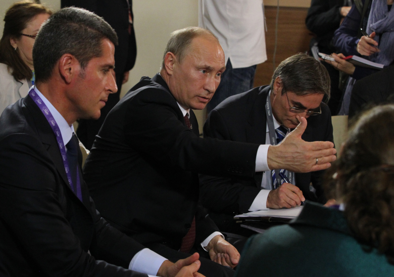 Президент РФ Владимир Путин во время встречи с членами Делового совета форума АТЭС. Слева – председатель совета директоров ООО «Группа "Сумма"», председатель Делового консультативного совета форума АТЭС Зиявудин Магомедов.