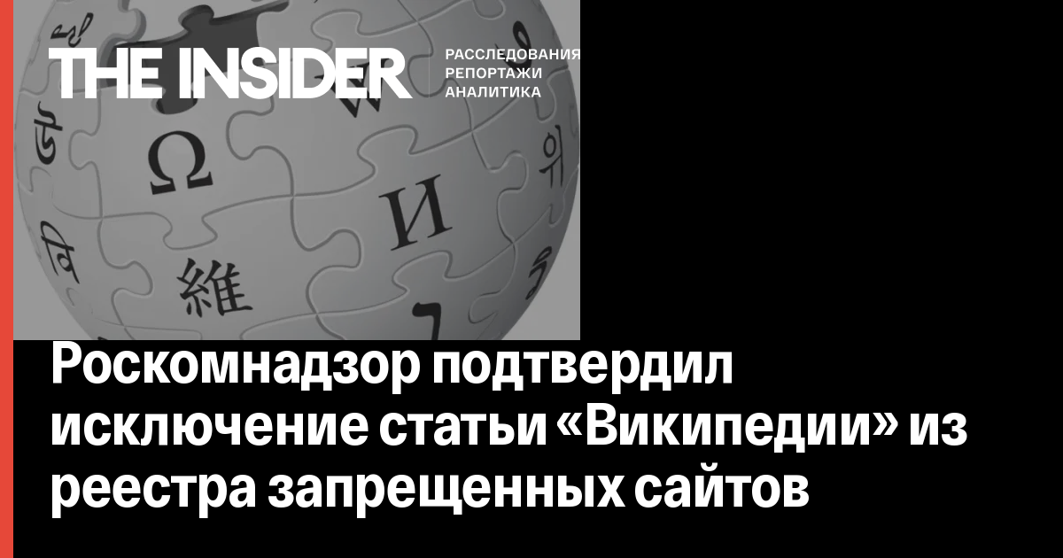 Роскомнадзор подтвердил исключение статьи «Википедии» из реестра запрещенных сайтов
