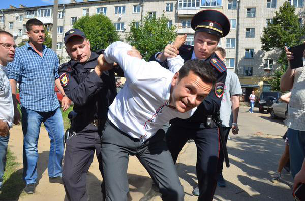 Задержание Ильи Яшина в Костроме. Фото: mynewsonline24.ru Комментарий редактора: Список ПАРНАС был зарегистрирован в облизбиркоме Костромской области 14 августа. Лидером регионального партийного списка стал Илья Яшин — о получении удостоверения кандидата он лично сообщил в своем твиттере. Впрочем, московским оппозиционерам пришлось попотеть в Костроме — изначально местный облизбирком отказал ПАРНАСу в регистрации для участия в выборах в областную думу. Партия подала жалобу в ЦИК, которая удовлетворила ее и отменила решение облизбиркома, обязав комиссию повторно рассмотреть вопрос. Выборы в Костромскую областную думу состоятся в единый день голосования 13 сентября.