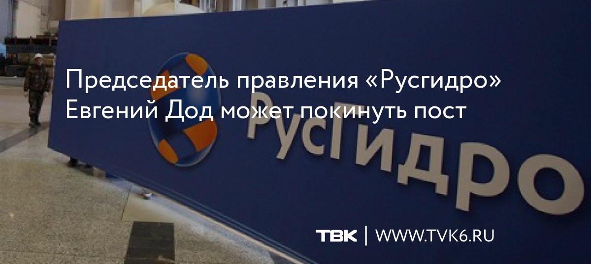 Председатель правления «Русгидро» Евгений Дод может покинуть пост. Об этом пишет газета «Ведомости» со ссылкой на свой источник в окружении топ-менеджера компании. Предполагается, что вопрос об отставке совет директоров может рассмотреть 11 сентября.