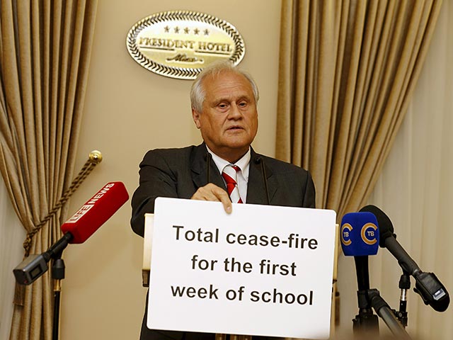 Предложение о перемирии получило отклик со всех сторон, и "есть надежда, что нам удастся с 1 сентября прекратить обстрелы", в свою очередь заявил полпред самопровозглашенной Луганской народной республики (ЛНР) Владислав Дейнего, также участвовавший в переговорах.