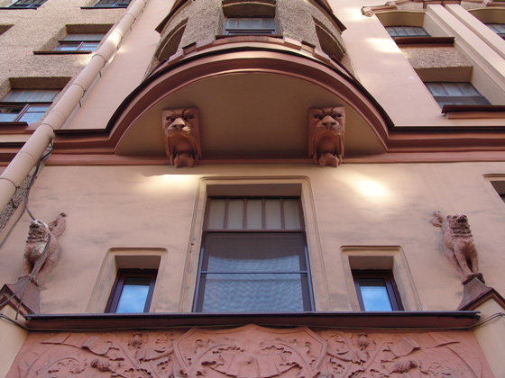 © Ольга Рябухина Гомункулы и маски на доходном доме Барсовой. Арх. Е. Морозов. 1911—1912 «Выходишь из церкви, а у тебя над головой дьявол»