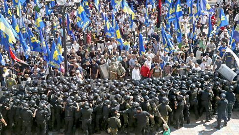 После принятия в первом чтении законопроекта об изменении конституции, перед Верховной радой начались столкновения между протестующими и Национальной гвардией