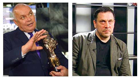 На НТВ надеются, что Максим Шевченко (справа) сможет составить конкуренцию Дмитрию Киселеву (слева)